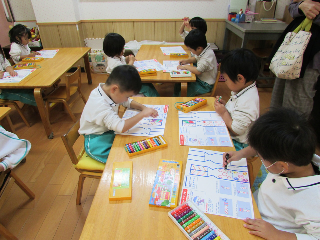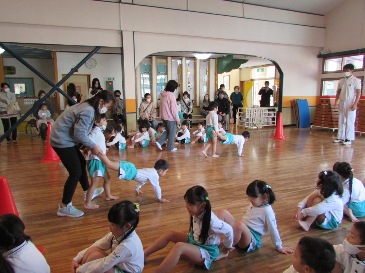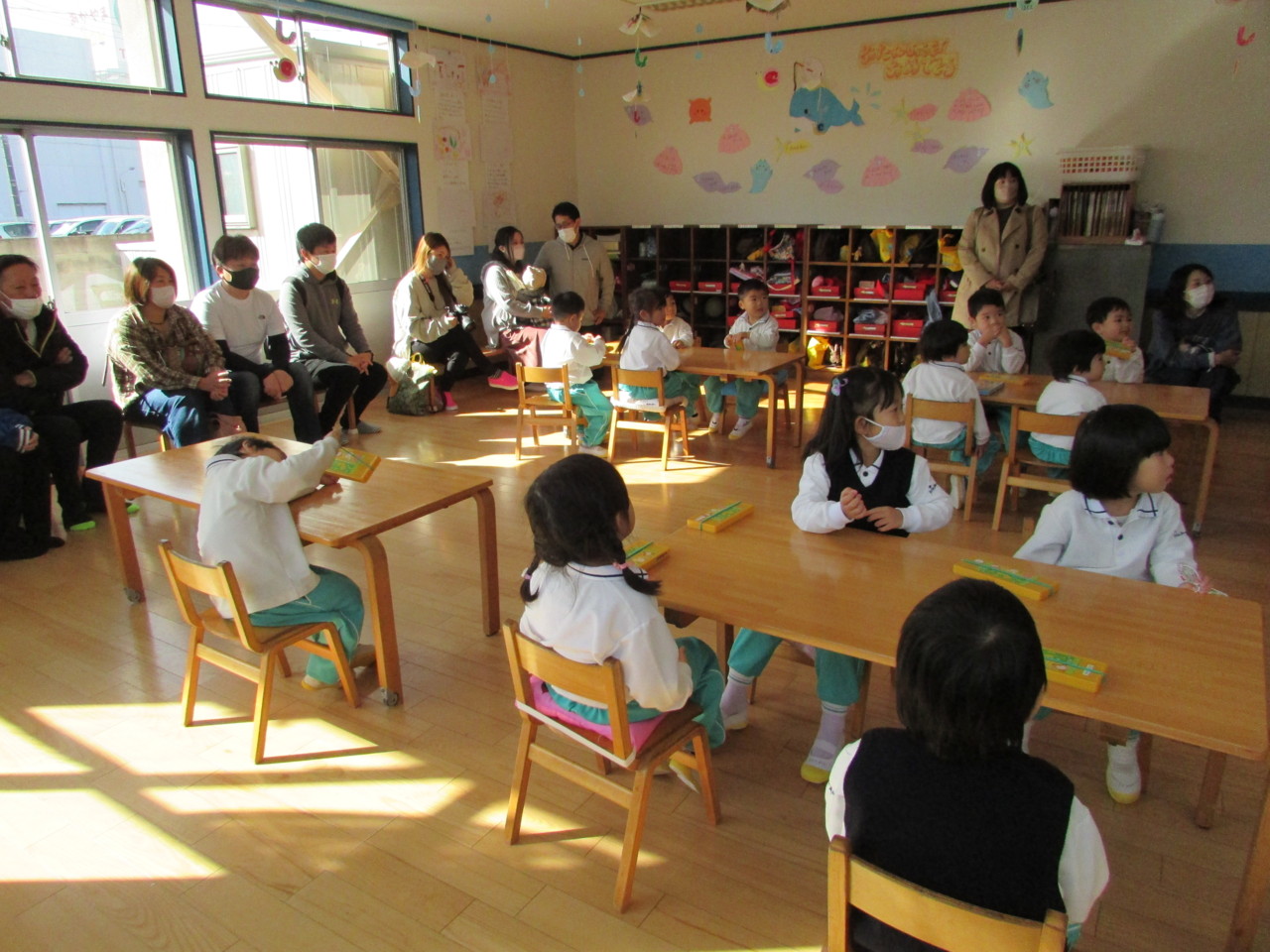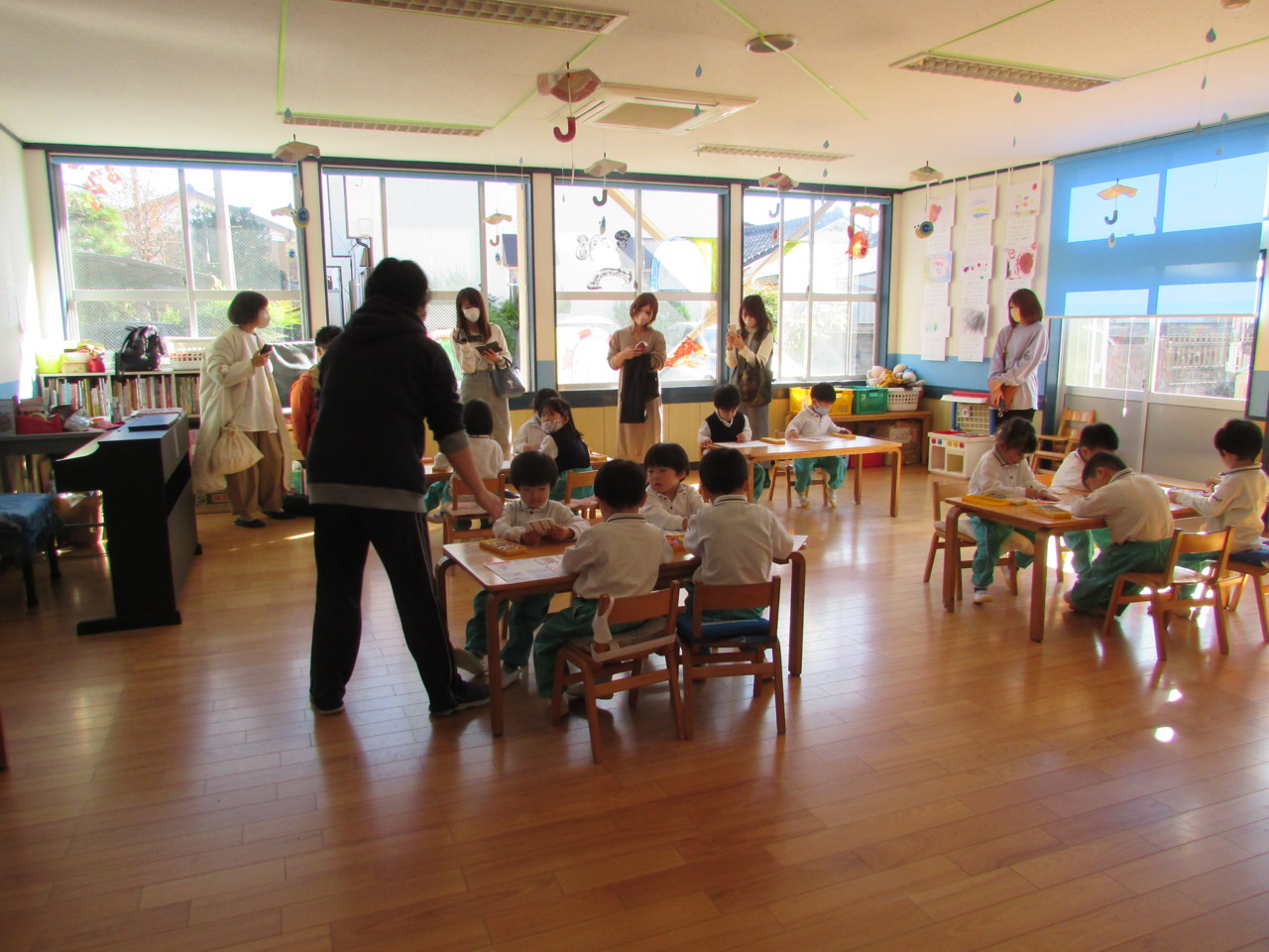 男児保護者、女児保護者に分かれ保育参観がありました