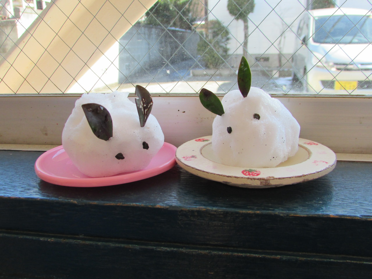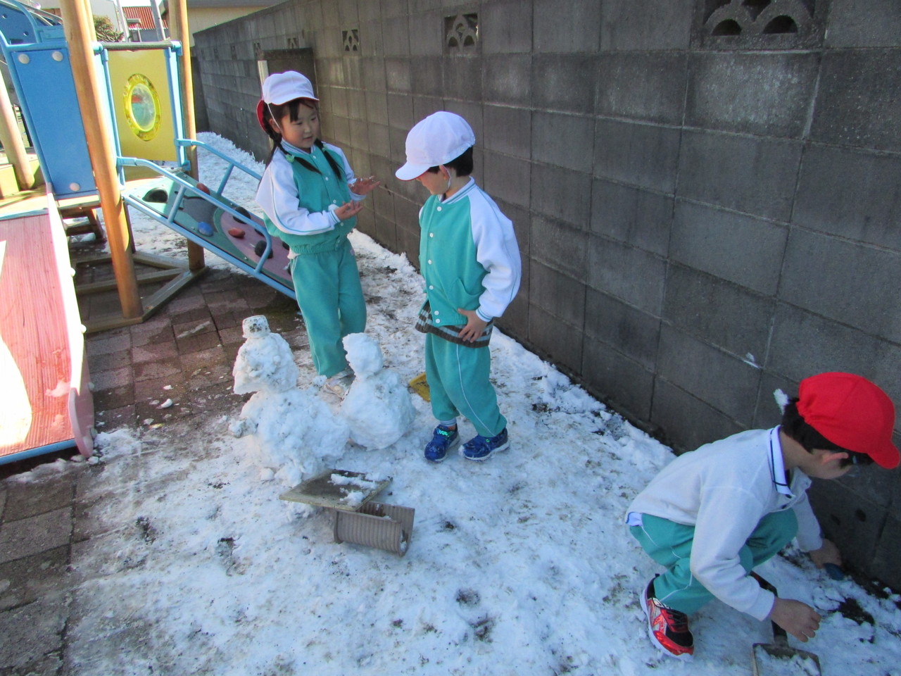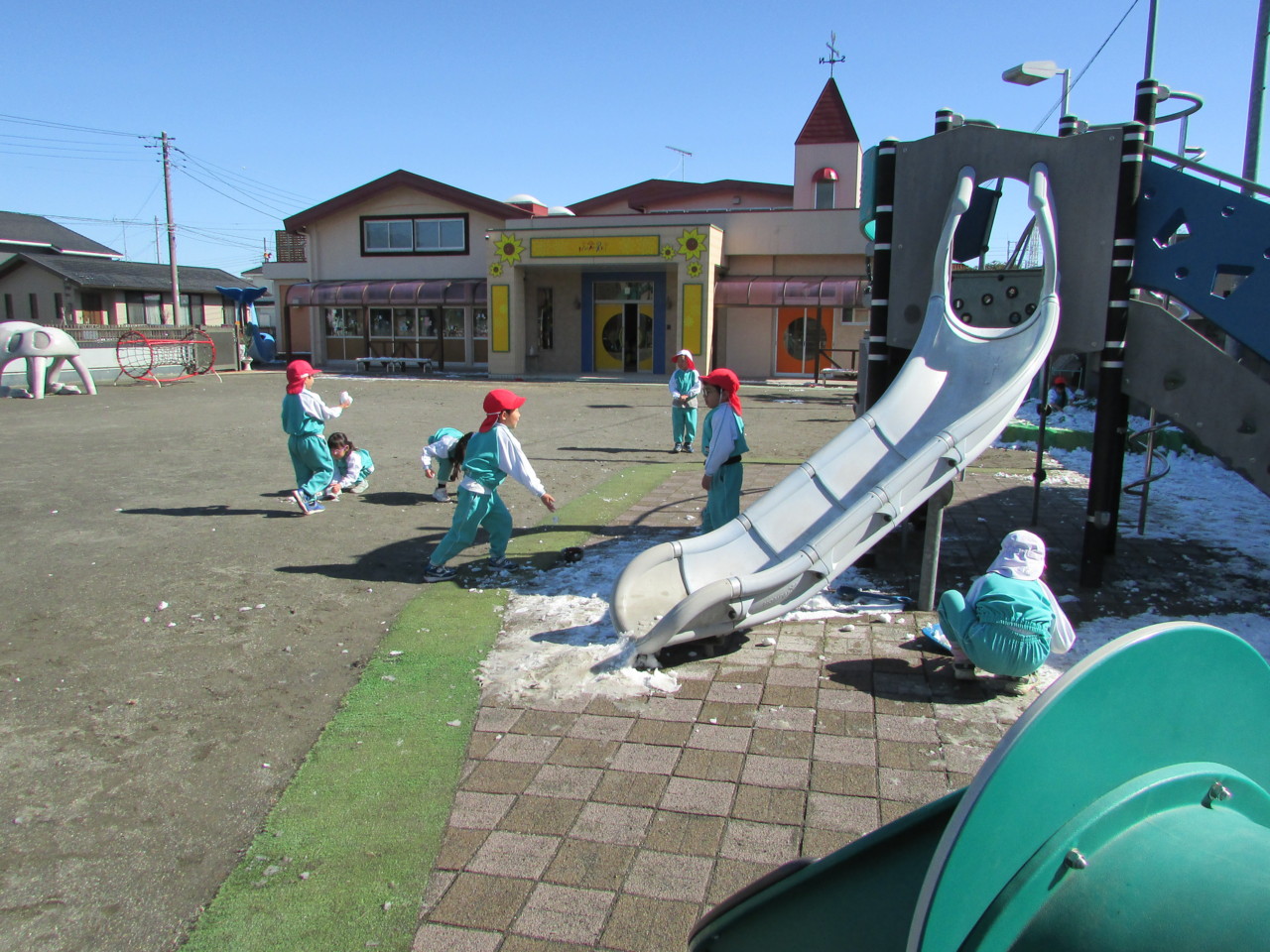 土~日曜日(7~8日)に降った雪が園庭に残っていました